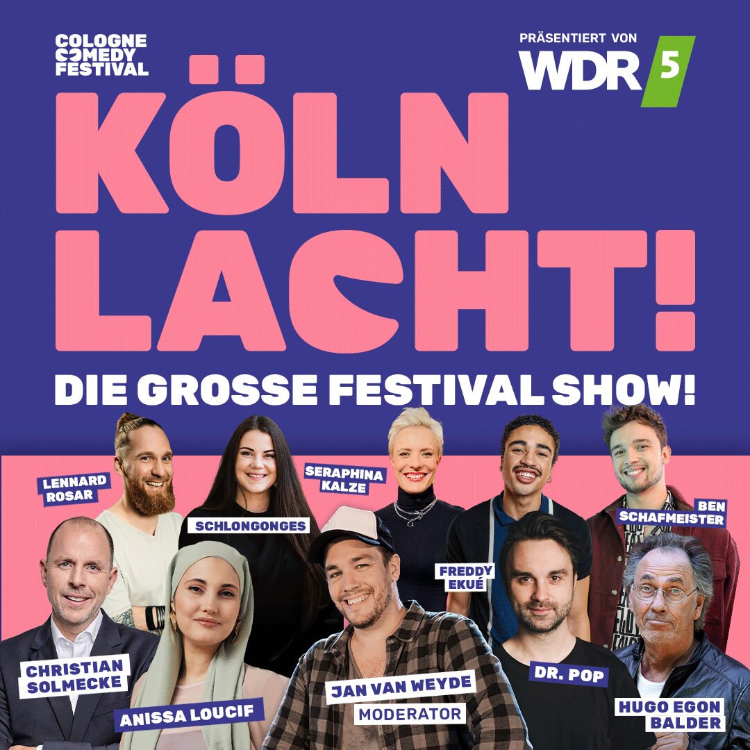 Mit „KÖLN LACHT! DIE GROSSE FESTIVAL SHOW“ feiert das COLOGNE COMEDY FESTIVAL gemeinsam mit WDR5 Highlights des diesjährigen Festivals! Moderator des Abends, Jan van Weyde präsentiert Künstler:innen aus den weit über 100 Mixshows, Solos, Lesungen und Kinonächten, die vom 22. Oktober bis 9. November in über 30 Locations in ganz Köln zu sehen sein werden. „KÖLN LACHT!“ findet in diesem Jahr zum ersten Mal in der Stadthalle Köln statt und bietet dort mit seinem vielfältigen Line-Up die bunteste aller Comedy-Mischungen. Von klassischen Stand-Ups über Musik, Witze bis hin zu den lustigsten Rechtsfällen der Welt. Die Show wird von WDR5 mit aufgezeichnet.