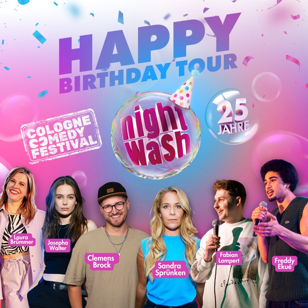 Die Kult-Comedy Show wird 25 Jahre alt und feiert Geburtstag! Das mit dem Deutschen Comedypreis ausgezeichnete Stand-Up Comedy Format präsentiert seit einem Vierteljahrhundert namhafte Comedians und Comediennes sowie die neuesten Talente der Comedyszene aus dem Waschsalon und bundesweit mit über 150 Live-Terminen. Heutige Stars und Sternchen wie Felix Lobrecht, Özcan Cosar, Chris Tall, Tahnee, Bastian Bielendorfer, Enissa Amani, Olaf Schubert, Bülent Ceylan, Torsten Sträter, Markus Krebs, Simon Stäblein, Maria Clara Groppler, Osan Yaran, Tutty Tran, Nico Stank, Negah Amiri, Carl Josef und viele mehr hatten im legendären Kult-Comedy-Waschsalon ihre ersten Bühnenauftritte. Das Kultformat feiert ein Jahr lang Geburtstag und präsentiert eine Geburtstagsshow, die sich gewaschen hat! NightWash bringt die beste Stand-Up-Comedy angesagter Comedians, upcoming Stars und talentierter Newcomerinnen und Newcomer mit dem allerbesten Publikum auf die Bühne. Jede Show ein Unikat! COMEDY AT ITS BEST!